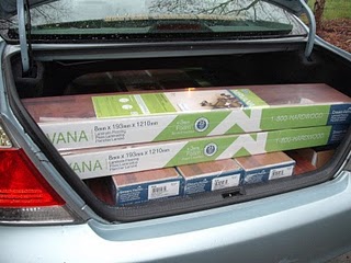 This past week John bought us a new car. It was time. We really had out grown both of our cars. Remember when we came home from Lumber Liquidators back in November (really? was it that long ago...)? We had both of our cars filled to the brim. We were quite a sight. In case you don't remember, let me refresh your memory.